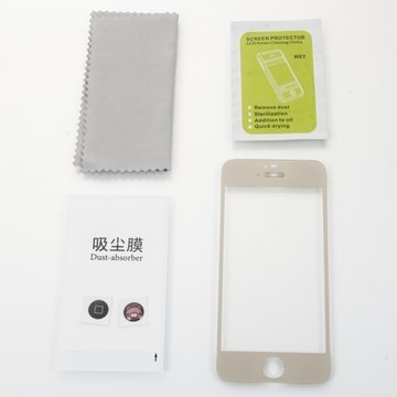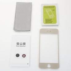Adopting tempered glass, which has high transparency, high sensitivity, delicate touch and ultra hardness, this 0.3mm Premium Tempered Glass Screen Protector for iPhone 5/5S/5CGold& Transparent will perfectly protect your cellphone screen from scratches and external shocks. Tempered glass membrane is safe to use; and colored optical coating layer does not influence the screen displaying. Furthermore, it is easy to clean, bringing you smooth surface and delicate touch. Proprietary technology ensures easier application. It can also be used repeatedly, without adhesive residue and bubble. Come to get one!