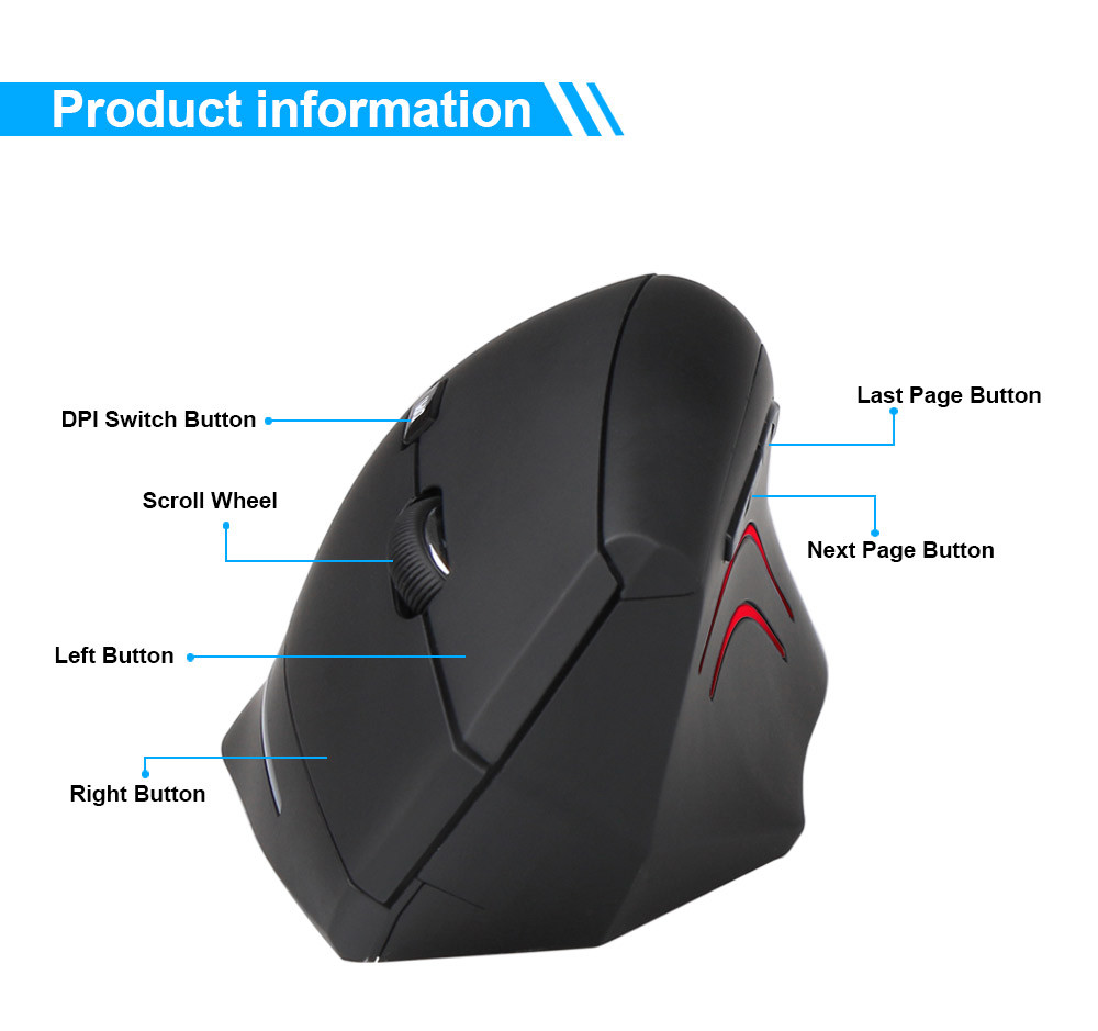 2.4G Nano Vertical Ergonomic Optical Mouse 3 Adjustable DPI Levels 2000/1500/1000dPi 6 Buttons for pc computer