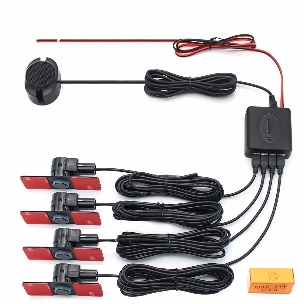 Car Parking Sensors Parktronics 4 Black/Silver/White 13mm Flat Sensors Reverse Backup Radar Sound Buzzer Alarm Adjustable Sound
